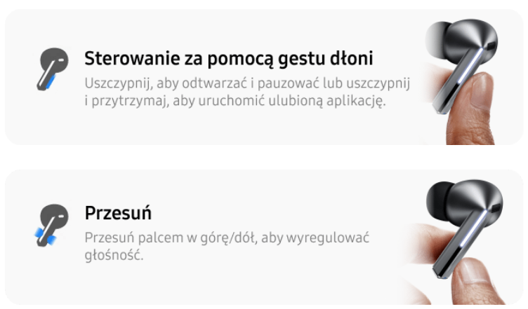 Steruj słuchawkami wygodnie z prostymi gestami, bez wyjmowania telefonu z kieszeni. Galaxy Buds3 Pro gwarantują pewne trzymanie się w uszach, nawet przy dynamicznych ruchach.