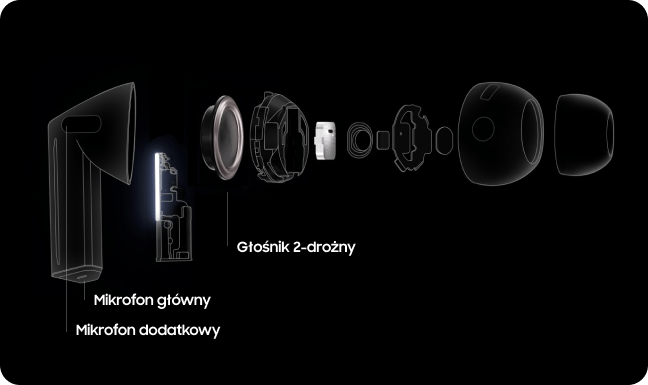 Zanurz się w bogactwie dźwięku – od głębokiego basu po wyraźne wysokie tony – z ulepszonym głośnikiem 2-drożnym. Dzięki podwójnemu wzmacniaczowi instrumenty brzmią czysto i bez zniekształceń. Galaxy Buds3 Pro, z niezależnie sterowanymi głośnikami niskotonowym i wysokotonowym, minimalizują zakłócenia, oferując szerokie spektrum dźwięku i równowagę na różnych częstotliwościach. Odkryj dźwięki na miarę orkiestry – od potężnych basów wiolonczeli po subtelne drżenie strun – harmonijnie podkreślające najdrobniejsze detale.