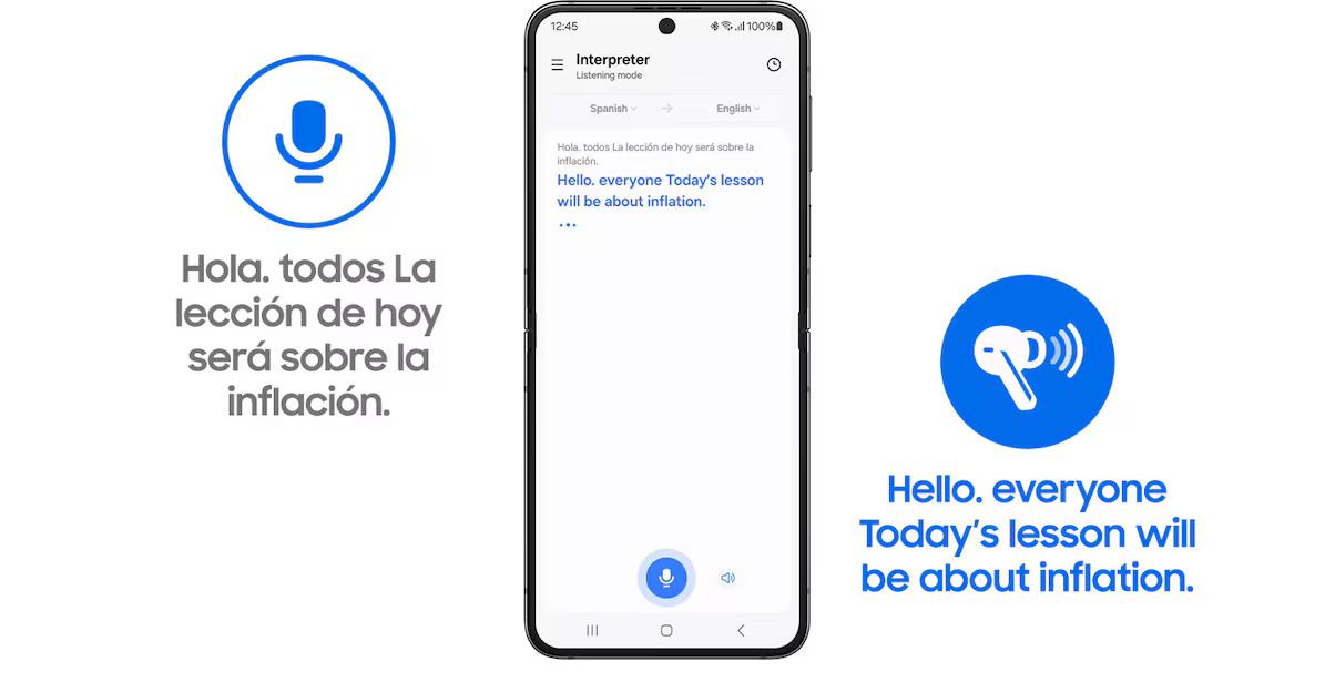 Dzięki Galaxy AI zrozumiesz świat jak nigdy dotąd. Zobacz tłumaczenie na swoim smartfonie Samsung Galaxy i jednocześnie usłysz rozmowę tłumaczoną w czasie rzeczywistym przez słuchawki Galaxy Buds3. Odkryj, co to znaczy naprawdę przełamać bariery językowe. Po otwarciu aplikacji funkcja Interpreter (Tłumacz) uruchomi się w ostatnio używanym trybie.