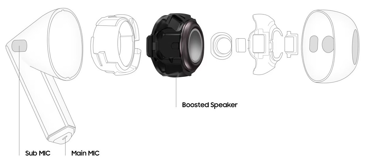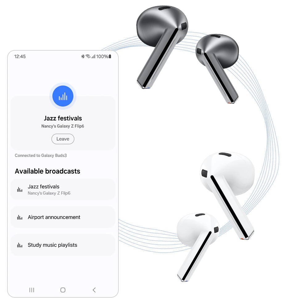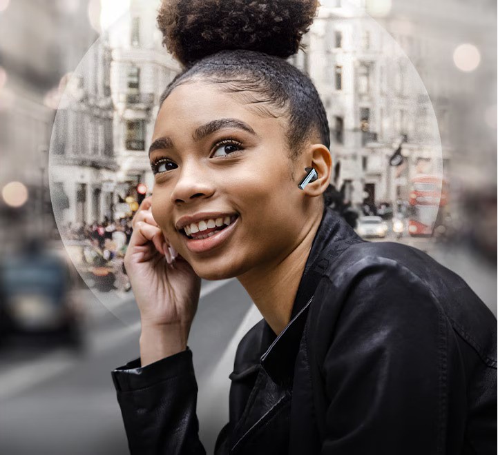 Płynne, niezawodne, wysokiej jakości połączenia? Galaxy Buds3 wykorzystuje model uczenia maszynowego do analizy zarówno szumu otoczenia, jak i wzorców głosu użytkownika, poprawiając jakość połączeń, aby zapewnić słyszalność Twojego głosu. Ulepsz swoje rozmowy dzięki bogatej, realistycznej przejrzystości dzięki superszerokopasmowym połączeniom — podwajając przepustowość głosu w porównaniu do konwencjonalnych połączeń Bluetooth