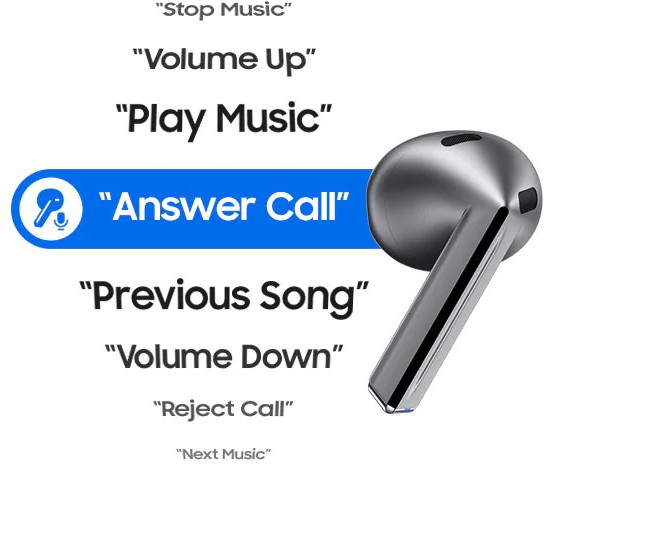 Kontroluj ustawienia audio bez konieczności dotykania telefonu. Wypowiedz tylko polecenie, takie jak „następny utwór” lub „zwiększ głośność” i pozwól Galaxy Buds3 zrobić resztę.